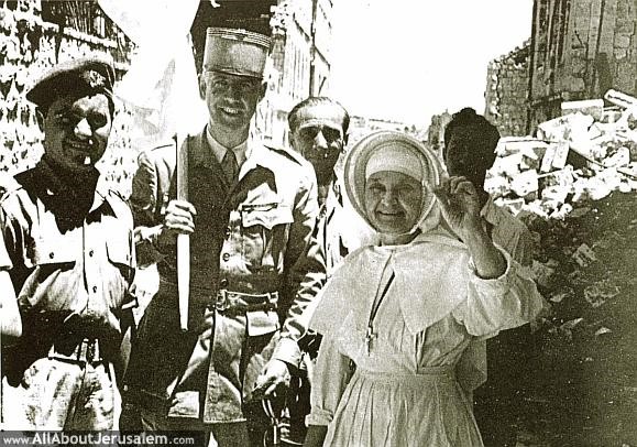 לאחר מלחמת העצמאות עמד בית החולים בשטח ישראל, ממש על הגבול. הרחוב למרגלותיו היה שטח הפקר, ועל חומות העיר העתיקה, מרחק מטרים ספורים ממנו כבר עמדו חיילי הלגיון הירדני. מתקופה זו מוכר אחד הסיפורים ההזויים ביותר על בית החולים. אחת הנזירות פתחה את החלון המופנה לעבר הגבול הירדני, והשקיפה אל העיר העתיקה. לפתע תקף אותה שיעול, והשיניים התותבות שלה נפלו אל מרגלות המבנה. לכאורה אין פשוט מזה, יוצאים אל מחוץ למבנה, ניגשים אל מתחת לחלון ואוספים את השיניים, אולם קו הגבול של מדינת ישראל היה קו הבניין של בית החולים, והשינים נפלו למעשה אל מחוץ לתחומי מדינת ישראל, אל שטח ההפקר שבין מדינת ישראל לירדן. הנזירה פנתה אל חיילי צה"ל שאיישו תצפית בבניין נוטרדאם הסמוך, וביקשה מהם שיאספו עבורה את השיניים, אך הם כמובן סירבו לעשות זאת, מחשש שהדבר יגרום לתקרית אש בין כוחות צה"ל לכוחות הלגיון הירדני. יאושה של הנזירה נגע לליבם והם החליטו להעלות את הבעיה בשרשרת הפיקוד. בקשת הנזירה הגיעה לבסוף לועדת שביתת הנשק, וההחלטה היתה שמשלחת בת שלושה קצינים תיכנס, לראשונה מאז מלחמת העצמאות, לשטח ההפקר ותחפש את השיניים התותבות. המשלחת הורכבה מקצין ישראלי, קצין ירדני וקצין צרפתי מכוחות האו"ם. המשלחת נכנסה לשטח ההפקר, סרקה את השטח ולבסוף מצאה את השיניים בין הקוצים וגדרות התיל. שמחים וטובי לב, הגישו הקצינים את השיניים לנזירה.