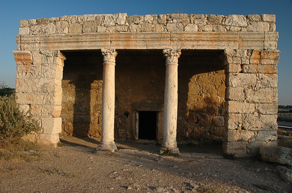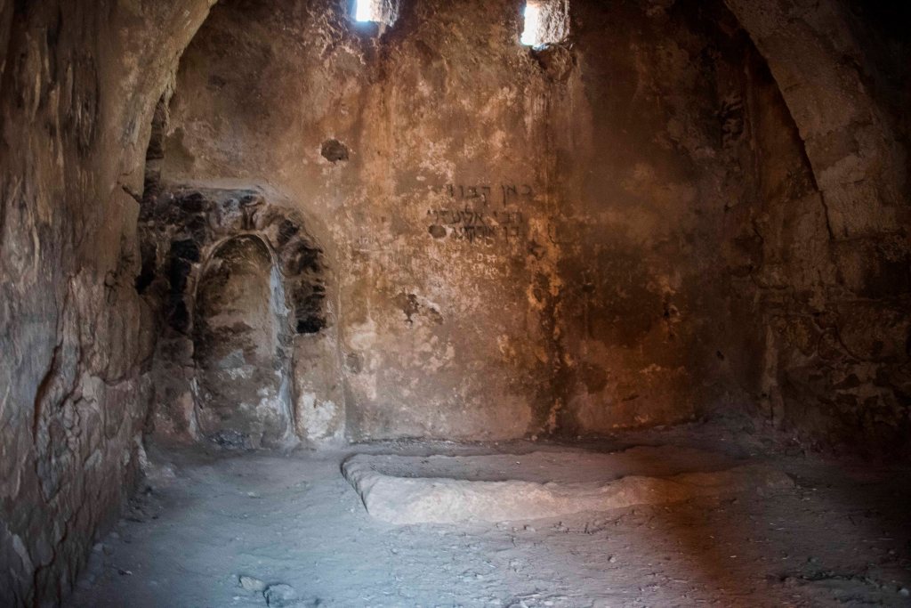 האולם העיקרי של המאוזוליאום. ניתן לראות את הבסיס של אחד הסרקופגים. בצד שמאל ניתן לראות את המחרב שהוסיפו המוסלמים, לאחר שאיסלמו את הקבר כהלכה. מזוית הצילום הזאת קשה לראות, אך חדי העין יוכלו אולי לזהות משמאל למחרב את הפתח שמוביל לחדר השני, ספק קולומבריום ספק חדר לאחסון אפר מתים. יתכן שהכתובת "כאן קבור רבי אלועזרי בן אורקונו", מסמלת את תחילת תהליך גיור המואזוליאום כהלכה. אגב, אינני מכיר רב בשם הזה, אך קיים תנא (החכמים המופיעים במשנה נקראים תנאים) בשם אלעזר בן הורקנוס. יחד עם זה לא מוכרת לי מסורת שמזהה את קברו באזור אלעד.