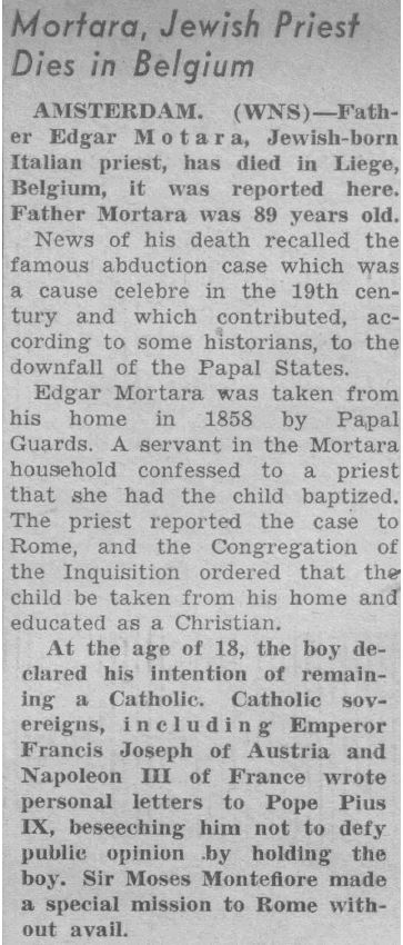 קישור לחלק הראשון של הסדרה, המתאר את חטיפתו של אדגרדו מורטרה על ידי הכנסיה, לאחר שהוטבל בסתר בהיותו תינוק.